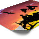 Dois pintinhos de águia esperam enquanto pais vêm da caça. Suas silhuetas são um contraste forte contra o céu feroz do sol de pôr. Computação de Kathie Miller