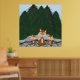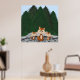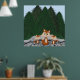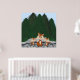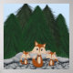 Apresentando a família de raposas. Mamãe e seus dois bebês estão relaxando em uma pilha de pedras perto do rio. Baseado em uma peça de arte original por © One Artsy Momma.