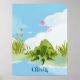 Mamães e sapos pais bonitos e bebês sentados sob a folha de lótus. As cores são pastéis e se parecem com uma pintura de aquarela. Este impressão vai iluminar o quarto de qualquer criança ou sala de jogos. Pode ser personalizado.