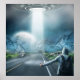 poster de ficção científica de fantasia surreal com alienígena de de espaçonave de . Este estranho e maravilhoso poster de ficção científica retrata uma nave espacial ufo parando para pegar um solitário de carona em uma estrada à noite. Perfeito para qualquer fã de ficção científica do gênero alienígena de filmes e filmes etc. Faz um presente de poster de excelente com qualidade de fotografia