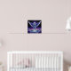 Este poster de fantasia apresenta um Anjo caprichoso em tons roxos azuis, flutuando logo acima de um portal mágico nas nuvens. Terminado em um impressão de tinta a óleo.