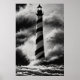 Farol numa tempestade marítima, pintura a óleo, preto e branco. Imagem digital.