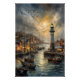 Pôster Farol Costeiro e Aldeia Costeira Arte Sunset