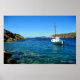 Barcos de pesca que flutuam nas águas de cristal azul em Faros, na ilha de Sifnos