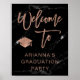 Esta placa moderna e na moda diz "bem-vindo" na moda, falso rosa dourado, com uma fotografia de um boné de formatura e o seu próprio texto personalizado.