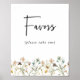 Cartaz de Favor Florais. Chic e elegante, este belo cartaz de favores florais apresenta deslumbrantes flores silvestres vintage delicadas pintadas à mão em aquarela rosa desbotado, azul empoeirado e amarelo, com elementos botânicos em verde-sage arranjados como uma moldura adorável. Encontre produtos correspondentes na Coleção de Casamento de Flores Silvestres em Aquarela Pastel Elegante.