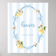 Obrigado os seus hóspedes com este encantador sinal de favores que inclui limões de aquarela, arcos azuis delicados e listras azuis e brancas clássicas. Um toque perfeito para o seu chá de fraldas inspirado no Mediterrâneo, este cartaz convida os hóspedes a levarem uma doce lembrança para casa.