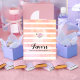 Deixe seus convidados com presentes e mostre-os com esta sinalização Favors. Fundo cor-de-coral, rosa e branco, de faixa de água, com conchas de moluscos brancas, cor-de-rosa, flamingo e branco em pano de fundo.