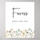Floral Favors Poster. Chic & Na moda, este lindo floral favorece o poster apresenta impressionante cor d'água pincelada manualmente cor rosa pincelada, azul empoeirado, e delicadas flores vintagares prensadas amarelas com botânicos verdes sábios organizados como um belo quadro. Encontre produtos correspondentes na Coleção de Casamentos de Flores Selvagem de Pastel Watercolor Pastel.