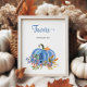 Adicione um toque sazonal aos favores do seu chá com este sinal perfeitamente ilustrado. Apresentando elementos de queda feitos à mão e uma abóbora azul, é o detalhe perfeito para a celebração de queda do seu bebê.
