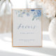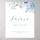 Este poster "Favors" apresenta um design de borda floral de cor d'água com flores elegantes em vários tons de azul - perfeito para o tema "Algo Azul Antes de Eu Fazer".