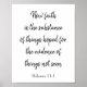 Lembre-se de sua fé usando esta poster. Apresentando o verso Bíblia hebraico 11:1, esta design diz "Agora a fé é a substância das coisas esperadas, a evidência das coisas não vistas" em letras negras sobre um fundo branco. Peça o seu hoje!