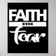 Fé sobre o medo, este design apresenta um cristão dizendo "Fé sobre o medo" em preto e branco.