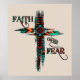 Este é um Poster de Uplifting Único "Um dos Tipos"! Ele apresenta uma grande cruz sudoeste em Turquesa, Laranja, Castanho e Negro em um fundo de bronzeado e as palavras inspiradoras..."Fé sobre o medo"! Design De Arte Original Pelo Artista Kerry Miller.
