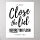 Feche a tampa antes de descarregar, reduza o sinal de pluma, o sinal de banheiro, Poster de etiqueta de banheiro para escritório, negócios, uso pessoal.