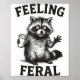 Poster Feeling Feral Raccoon Drink Coffee Funny Trash Pan