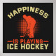 Poster de hóquei com um jogador de hóquei da silhueta lê Felicidade está jogando hóquei no gelo!