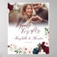Elegante e moderno sinal de boas-vindas de casamento com "Felicidade Eterna Depois" projetado em uma fonte de estilo de letra elegante e moderna que complementa lindamente nossos florais de aquarela burgundy e azul que enquadram os cantos. Personalize com nomes e data de casamento e sua foto. Todas as flores são pintadas à mão pela Moodthology Papery.
