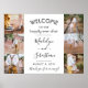 Dê as boas-vindas aos convidados do casamento em sua cerimônia ou recepção com um elegante cartaz personalizado de colagem de 6 fotos de 18"x24". As imagens e todo o texto são fáceis de personalizar. (DICA DE COLOCAÇÃO DE IMAGEM: Uma maneira fácil de centralizar uma foto exatamente como você deseja é cortá-la antes de fazer o upload para o site da Zazzle.) O design moderno minimalista preto e branco apresenta seis imagens de sua escolha, caligrafia estilosa manuscrita, tipografia vintage inspirada no art déco e mensagens personalizáveis que dizem "bem-vindos ao nosso para sempre" e "obrigado por vir". Este letreiro de boas-vindas de casamento é uma maneira elegante de compartilhar fotos do noivado, ao mesmo tempo em que adiciona um toque pessoal às decorações da celebração do seu dia especial. Parabéns