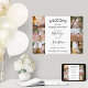 Dê as boas-vindas aos convidados do casamento na sua cerimônia ou recepção com um elegante cartaz personalizado de colagem de 6 fotos de 18"x24". As imagens e todo o texto são fáceis de personalizar. (DICA DE COLOCAÇÃO DE IMAGEM: Uma maneira fácil de centralizar uma foto exatamente como você deseja é cortá-la antes de fazer o upload para o site da Zazzle.) O design moderno minimalista preto e branco apresenta seis imagens de sua escolha, caligrafia estilosa manuscrita, tipografia vintage inspirada no art déco e mensagens personalizáveis que dizem "bem-vindos ao nosso para sempre" e "obrigado por vir". Este letreiro de boas-vindas de casamento é uma maneira elegante de compartilhar fotos do noivado, ao mesmo tempo em que adiciona um toque pessoal às decorações da celebração do seu dia especial. Parabéns