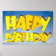 Feliz aniversário. Letras amarelas, design azul do céu.