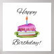 Uma fatia ilustrada de bolo de aniversário com uma vela e o texto Feliz Aniversário!