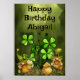 Lucky Four Leaf Clovers e Irish Leprechaun Gnomos Happy Birthday Poster - Personalize com um nome ou qualquer texto que você queira oferecer.