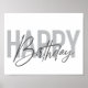 Design moderno, simples, mínimo tipográfico de um ditado "Feliz Aniversário" em tons de cinza. Arte gráfica legal, urbana, moderna e divertida com tipografia escrita à mão.