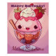 Pôster Feliz Aniversário Sorvete de Morango Kawaii