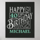 Feliz design de aniversário. Esta versão do esquema é adequada para saudar o aniversariante, mas como a idade e o nome do texto e a cor de fundo devem ser personalizados, é um bom design de saudação de Feliz Aniversário para ele e para ela.
