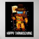 Poster Feliz Dia de Ação de Graças Astronauta Turquia Cai
