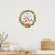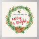 Um poster de Natal com uma coroa de água. Agulhas de pinheiros verdes, cones de pinho e bagas decorativas constituem esta coroa festiva. Dentro a coroa são alguns ornamentos decorativos e as palavras" podem ser Feliz e Brilho. Escrito em uma fonte vermelha da moda. Um padrão verde e vermelho com quadrados brancos ao longo da fronteira.