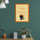 Diga "Feliz Dia das Bruxas" com este adorável gatinho de bruxas poster! Gatinho bonito em uma fantasia de bruxas de Halloween acompanhada por um rato amigável na borda.