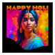 Pôster Feliz Holi Bela Mulher de Azul