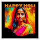 Feliz Holi com uma mulher bonita com amostras coloridas de dor e "Happy Holi".