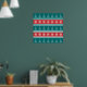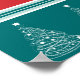 Ilustração feliz de Natal com árvore de Natal e decoração de flocos de neve em fundo vermelho, branco, azul e turquesa listrado