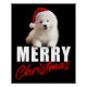 Pôster Feliz Natal Cachorro Samoyed Puppy com Papai Noel