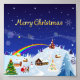 Linda paisagem nevada com árvores de Natal, casas, um homem de neve, uma igreja, e um arco-íris com flocos de neve caindo. Papai Noel e uma rena caminhando juntos para distribuir presentes de Natal na noite de Natal. Linda e única cena natalícia para as férias.