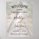 Dê as boas-vindas aos convidados do casamento em sua cerimônia ou recepção com um elegante pôster personalizado com foto sobreposta de 18"x24". A imagem e todo o texto são simples de personalizar. (DICA DE COLOCAÇÃO DE IMAGEM: Uma maneira fácil de centralizar uma foto exatamente como você deseja é cortá-la antes de fazer o upload para o site da Zazzle.) O design moderno minimalista preto e branco apresenta uma imagem de sua escolha, caligrafia com estilo manuscrito elegante, tipografia vintage inspirada em art déco e mensagens personalizáveis que dizem "bem-vindos ao nosso para sempre" e "obrigado por vir". Este letreiro de boas-vindas de casamento é uma maneira elegante de compartilhar uma foto de noivado, adicionando um toque pessoal às decorações da celebração do seu dia especial.