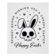 Desejos felizes de Páscoa com uma ilustração de crânio de coelho bunny sinistro. Tema de festa gótica estética preta e branca citações engraçadas saudações decoração pôster impressão.