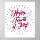 Feliz 4 de julho, estrelas vermelhas e azuis fogos de artifício festivos patrióticos poster decorativa do Partido Festivo. Texto de script elegante. Excelente para comemorar o dia 4 de julho, Dia da Independência, festas de férias. Verifique o resto da coleção para itens de coordenação correspondentes.