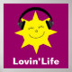 Poster cor-de-rosa com fones de ouvido sorridentes que vestem sol e as palavras "Lovin' Life" Texto e cor de fundo são personalizáveis clicando no botão "Personalizar" - muitas cores e fontes de onde escolher. Escolha o tamanho do seu poster. Também disponível na canvas. Visite minha loja Sober Princess para ofertas únicas e divertidas para pessoas em recuperação de álcool e vícios - e presentes com mensagens espirituais/inspiracionais. Todas as ilustrações criadas por um alcoólico em recuperação.