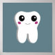 Poster com um desenho de um grande dente branco com um sorriso kawaii fofo e grandes olhos felizes.