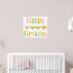 Cupcakes cor-de-rosa, verde, azul e cor de laranja com aspecto, Feliz aniversário. Um design de rega bucal para festas de aniversário!