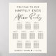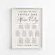 Poster de assentos de natas-leves modernos para até 10 mesas com "Welcome To Our Felily Ever After Party" em um roteiro de chic e uma simples tipografia e seus nomes e data de casamento juntos por um coração. Selecione a opção de download digital a ser editada com alterações de última hora e impressão localmente.