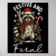 Poster Feral And Festive Raccoon Santa Hat Christmas Ligh
