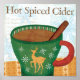 © Verique Charron / Wild Apple. Esta caneca verde apresenta uma rena, flocos de neve, e tem as palavras Cider picado quente nela escritas.