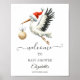 Um anúncio de gravidez de cegonha fofo dizendo que um bebê está a caminho. O design apresenta uma doce cegonha desenhada à mão com o chapéu de Papai Noel e uma bola de Natal. Totalmente personalizável com seus detalhes de evento, é ideal para uma celebração encantadora e sazonal, adicionando um toque doce e na moda para receber seu bebê.