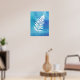 Print of a silhouette of a single fern frond, in white, against a soft, summer sky blue, watercolor background
