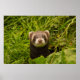 Um poster com uma fotografia adorável, com um pequeno furão marrom em pé em um capim longo. Que bom!